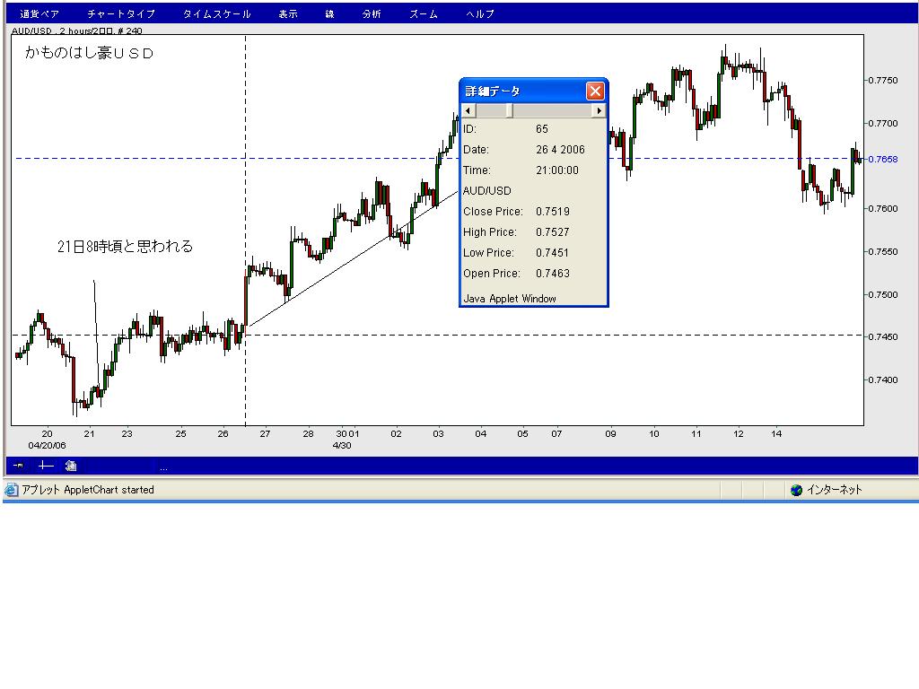 ところ揉みあいに入っていますが今回は 生活サイクルにおけるおすすめ通貨を探索します。 なお基準は多くの方がそうであるように 1仕事をしながら 2夜短時間で 3リスクが少ない ということから勝手ながら平均的サラリーマンの 観点で評価してみます。 1 時間 平均的サラリーマンの平均週労働時間は 勝手ながら60時間としますと1日の平日労働時間がおよそ 10時間として 8時30分~19時30あたりが最も平均的となるのではないで しょうか。であれば 帰宅時間を考慮しますと20時30分~22時あたりから PCにかじりつくことが出来ると仮定します。 現在米国のNYオープン22時が理想的な参加条件に あたりそうです。 ではこの前後時間の指標をチェックしますと.... おすすめ やはり米および加の指標が21時30分より目白おしですので がぜん北米及び南米が有利となります。 さてその観点から見ますと豪やNZの指標は朝8時という ようにややサラリーマンにはきつい時間に発表となり やや不利な点があります。 次に欧州ですが16時00~18時00~と夕方より 目白押しであります。 これもやや残業の多いサラリーマン泣かせな時間 ですね。 バットサプライズな指標があった時の判断はやはり 相場を生で見るのが有効な手段と私はみております。 (お恥ずかしい限りです。) さて最後に... らしく豪のトレンド変換の前回のタイミングを 検証してみます。 まずAUDUSDたるかものはしです。 注4月です。 さてその日の材料を見てみます まず4月21日8時かものはし反転ですが この時間特に指標もなくオーストラリア市場開場に 伴う上げとテクニカルなタイミングのようです なお次の日は... みなさんご存知のG7が夜にありかものはしもその恩恵を 受けここからレンジを飛び出す快進撃が始まります。 3月豪円です。 3月27日17時---引用 07:45 (NZ)2月貿易収支 -9.11億NZドル -2.74億NZドル -2.57億NZドル 16:15 (スイス) 1月小売売上高 +3.1% +3.1% ----引用終了BY三貴商事様より NZが安値を記録しその後この日が円高の最終となります。 3月29日午前4時FOMCにより4.75%へと金利引き上げ がありコアラはドル円に引っ張られる形で値を 爆発的に戻しています。 というわけで結論ですが金利差が無視される相場ですが いまだ米の利上げ時には豪円も引付けて押し目を拾うの が有効ではないか?と見ます 8時の投資は無理ですが事前に仕込むのも手です。 やはりドル円がキーとなるようです。 PR |