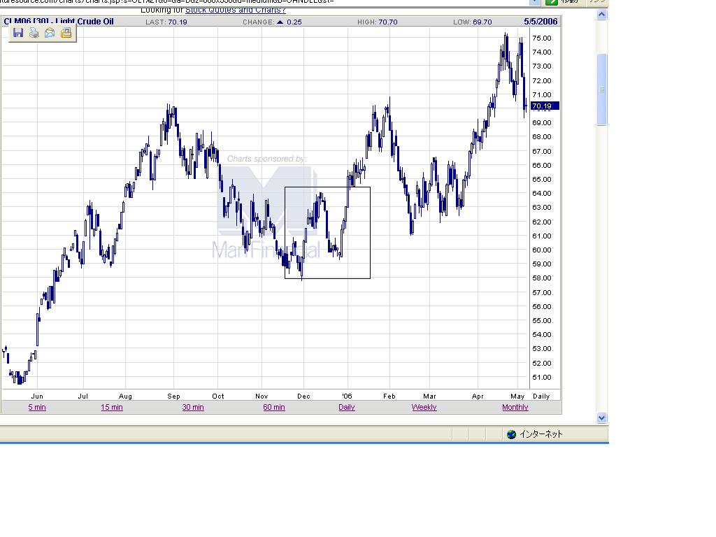 チャートを見ているのですがWカップの 決勝より早く起きそうなユーロ崩壊のほうが 為替っ子には気になりますね。 さてユーロの行く末は実は中期的に まだまだ底硬いと見てますが重要なのは スイスの硬さが敗れるときが本当の138円台 1.8ドル台との認識です。 さて金です。 週足のチャートですが お恥ずかしい限りの私の見方ですが 600割れはまだ起きてませんここで重要なのは 全世界的な株安が起きることですが材料として はまだ弱く とどめのキーとなる中国の中銀なのが放出 するかがポイントです。550をメドとしてます。 ここが死守されますとまだまだ騰がると見ます。 その時は700復活も可能でしょう。 原油です こちらはViCL(石油タンカー)の船賃上昇も見受けられ 上昇トレンドは継続と見ます。 ただし74ドルが可能かとの問いには否定的です。 レンジ相場が中期的に続く68-72がしばらく続くでしょう。 さて以上を踏まえて今後の恥ずかしながらの方針ですが 1円高可能性ゼロ 2主要通貨間の方向感はない 3豪円の追い風 となります。 1ですがポイントは今月の日銀政策会議で ここで金利上昇を見ている海外投機が落胆するのは 確実であるからこの日を境にドル円は116円到達を するか?が今自分の見ている最大のポイントです。 6/1見通し ただこの予想ですと原油と米ドルが相関関係になるという 矛盾が起きますのでやはり綱渡りなのは否めません。 PR |