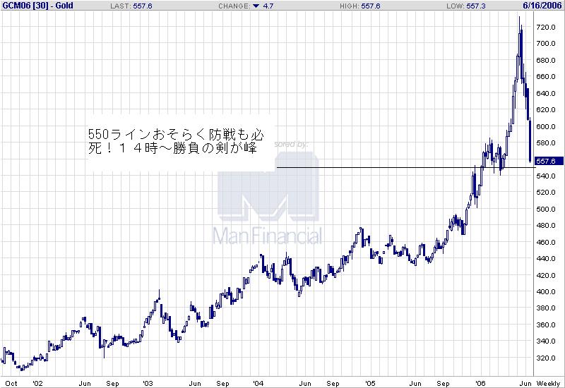 ありがちな記事ではありますが金が550を切るかという 正念場にきました。 原油はやはり68ドルにサポートされて弾かれましたが 豪投げ出して 商品先物に戻ろうかな? さて...金チャートです。 ここから復活するかどうかがポイントです ドルの行く末もかかってますので本日14時~が ポイントであると見ます。こうなるとどうなるか わかりませんが。明日の未明にははっきりするでしょう。 ここが崩壊しますとゴールドショックはいろいろな問題を 引き起こしますので個人的には反発を願います。 さて...本題のドル円ですが書いたその日に114円に戻り なんともプアーな予想をしてしまいましたが 私はやはりWカップ中の116円台は見てますので 本日も堅調継続です。 というわけでやはり豪円の買いはFOMC直前の押しを 狙うとします。 |