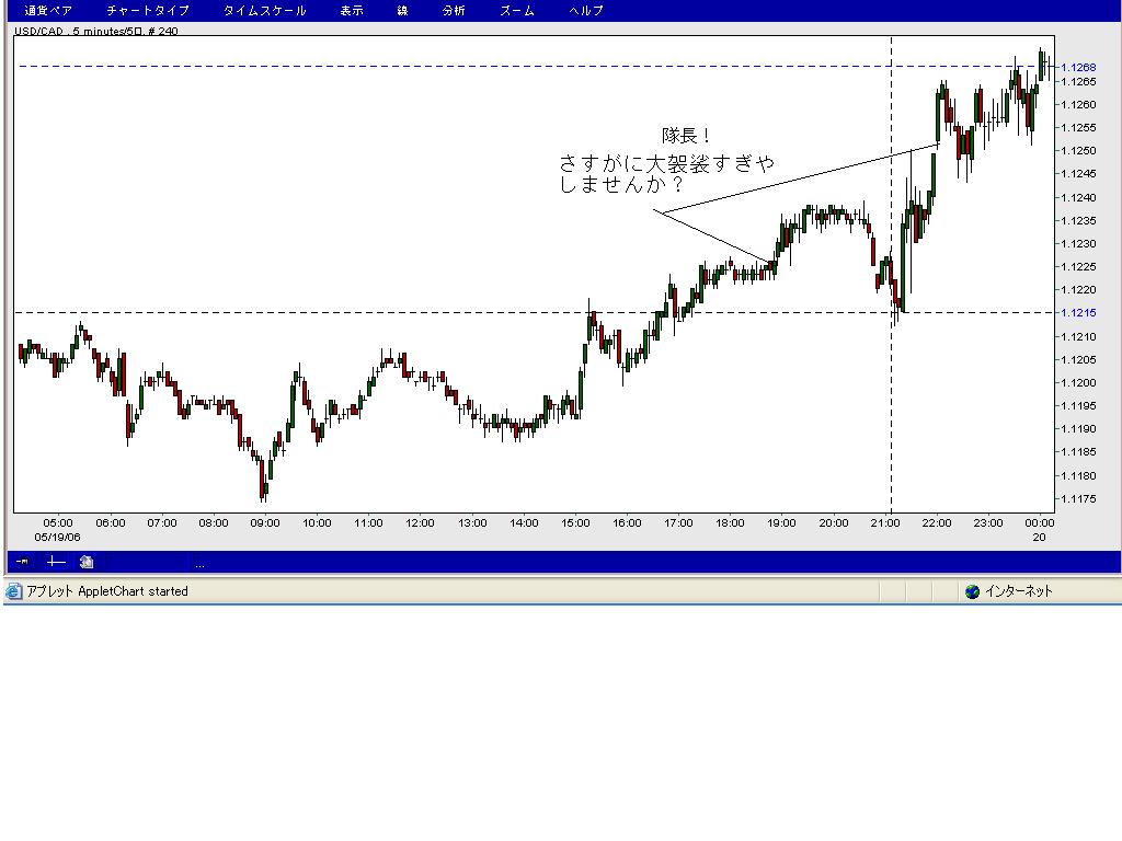 さて市場予想と外為ドットのチャート達人 石井さんの期待を裏切り 横ばいとなった豪円ですがみなさん買えましたか? 私は83.54で21時30分20万買いました。 さてそれではサルベージの説明をいたします。 現在の塩づけポジ お恥ずかしい限りです 豪円 87円 2枚 86円 4枚 全ロング 含み損あり スワップ+3万ほど... さて...1時は50円台も覚悟した豪円でありますが ここで禁じ手のなんびんいたしました。 83.54 20枚L 戦略1 平均買い付け値がこれでピタリ84円になりました! このまま84.8で指値入れて放置でOK! 私の恥ずかしながら予想では... 豪円は騰がりますのでユーロ相関で85円は行くと 見ています。(たいした上げでもないですが~) 戦略2 騰がらなかった場合 確率的にありですが少ないと見てます。 その場合素直にここは83円で損きり致します。 また下でサルベージ発動であります。 ポイント 原油価格は横ばいか強含み 政策金利発表まで下がるはずなし。 ユーロ相関強し+ドル軟調地合い。 ハリケーン季節終了により経済底固い。 対中国の輸出強含み。 と前の5月中旬の原油相場と同じく今回はまける気が しませんなお下がると読む人の意見は テクニカル的なものですので視野狭!で片付きます。 なお投資は自己判断でお願いいたします。 |